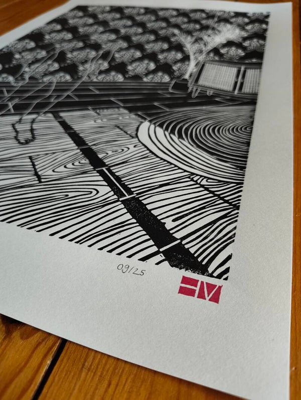 Original numbered and signed print of the 'Schnitte 02' linocut, from a series of six linocuts. This edition consists of 15 prints, you can request a specific print number (if it isn't sold yet).