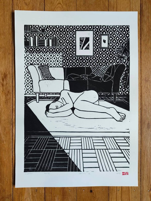 Original numbered and signed print of the 'Schnitte 05' linocut, from a series of six linocuts. This edition consists of 15 prints, you can request a specific print number (if it isn't sold yet).